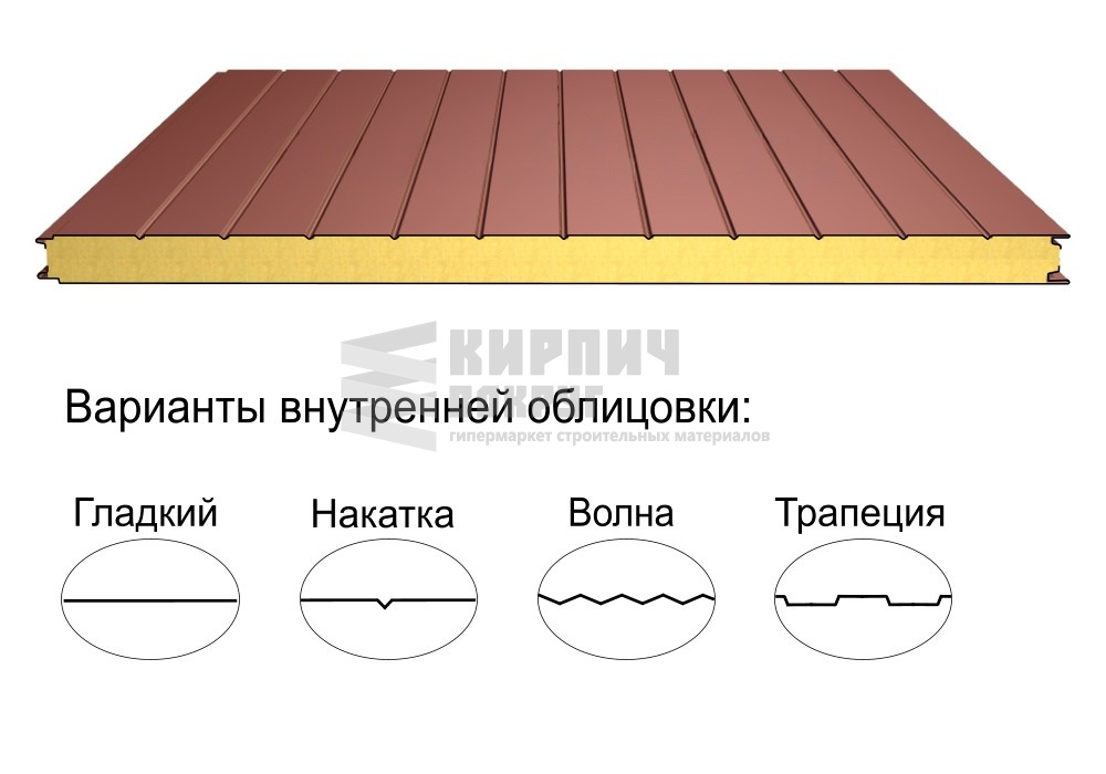 В интернет-магазине "Кирпич Вокруг" Вы можете купить Стеновая трёхслойная сэндвич-панель накатка 50мм 1190мм с видимым креплением минеральная вата Полиэстер Металл Профиль в Ейске, а наши специалисты готовы вам помочь с выбором по адресу: , или оказать консультацию по телефону: .